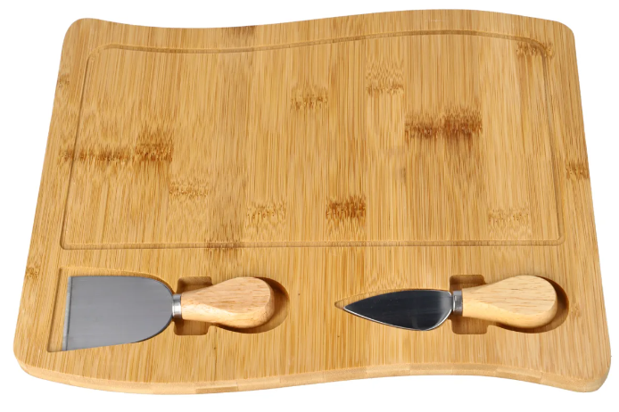 Wavy Rectangular Bamboo Cheese Serving & Cutting Board Set 31.7cm 3cm